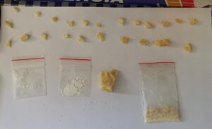 No primeiro caso, uma guarnição da Polícia Militar conseguiu visualizar um meliante comercializando substâncias entorpecentes,o mesmo juntamente com um comparsa ao vizualizar a viatura fugiu, más foram localizados pelos agentes em um bar. Diante da revista pessoal,foram localizados com os mesmos; porções fracionadas e outras porções não fracionadas de maior porte de substância análoga a pasta base de cocaína, uma porção de cocaína, R$564,00 em dinheiro e três aparelhos celulares.