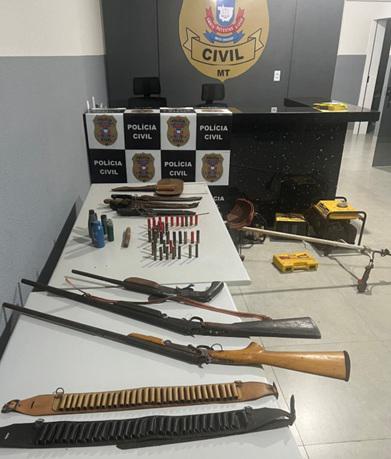 Ao realizar buscas nas barracas construídas pelos invasores, foram encontradas três armas de fogo municiadas, além de ferramentas e equipamentos para a realização do desmatamento (motosserra, foice, facão, machado, roçadeira e um pequeno gerador de energia). Também foram apreendidos dois veículos que estavam com os invasores. Os seis foram presos em flagrante e autuados por porte ilegal de arma de fogo e esbulho possessório.