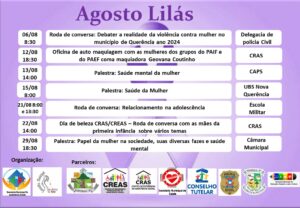 A programação também é cercada de palestras e oficinas que se estendem até o final do mês de agosto, e conta com o apoio da Assistência Social do município, assim como de outras instituições que abraçaram a causa.