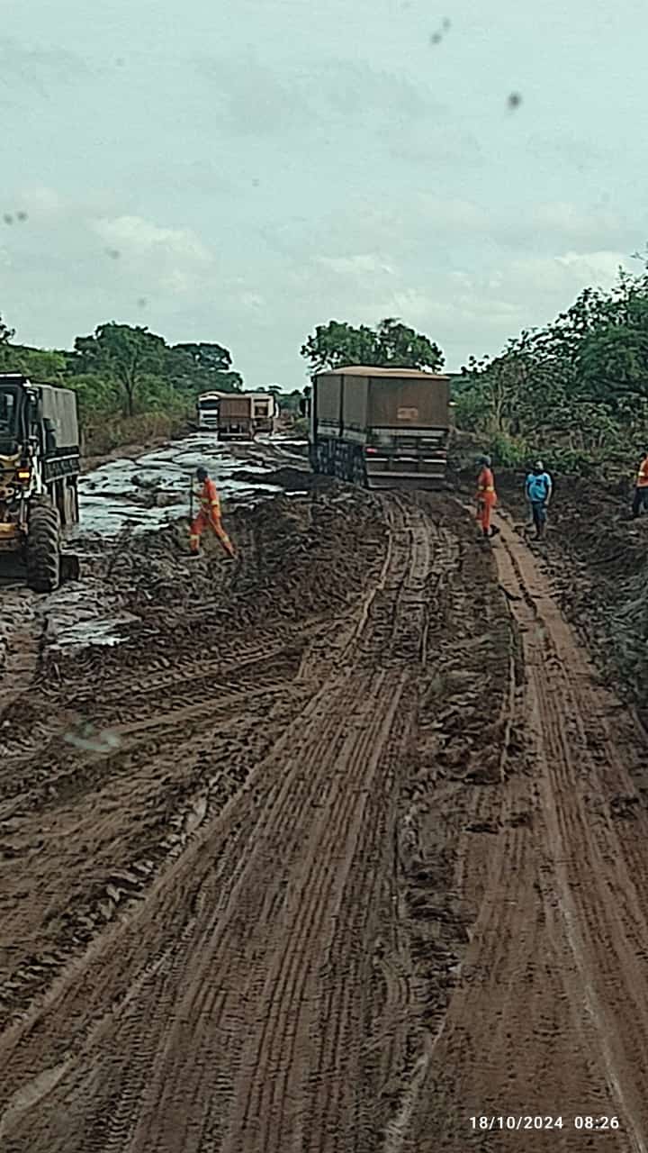 Esse trecho segue crítico, por não ter asfalto, sendo um obstáculo para os caminhoneiros há anos, seja no tempo de extrema seca, onde a poeira tira a visibilidade tomando conta de tudo, ou seja, em época de chuva, onde muitos atoleiros se formam, provocando acidentes e prejuízos imensos.