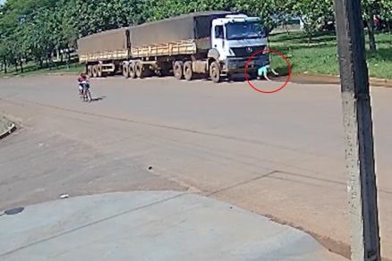 Câmeras de segurança flagraram o momento do acidente. Nas imagens, a idosa aparece atravessando a rua, quando passa em frente ao caminhão parado. Com o ato, o veículo parte e sai do local, atropelando-a.