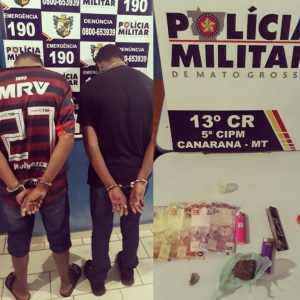 Durante rondas no Bairro Nova Canarana, Policiais Militares da 5ª CIPM, realizaram abordagem a dois suspeitos, ambos sendo menores, de 17 anos de idade, onde os mesmos apresentavam atitude suspeita. Durante o procedimento policial os menores demonstraram bastante nervosismo, onde juntamente com os mesmos foram localizados a quantia de R$ 130,00 em moeda corrente, bem como substâncias análogas à maconha e pasta base. Diante dos fatos, foi dada voz de prisão aos mesmos, onde ambos foram apreendidos e conduzidos à sede do Quartel da PM e posteriormente entregues, juntamente com o material apreendido na Delegacia de Policia Judiciária Civil local. Vale ressaltar que o local da abordagem é frequentemente denunciado como sendo utilizado para o tráfico e uso de entorpecentes. Do mesmo modo, ambos os menores já foram conduzidos outras vezes, anteriormente, por crimes de mesma natureza.
