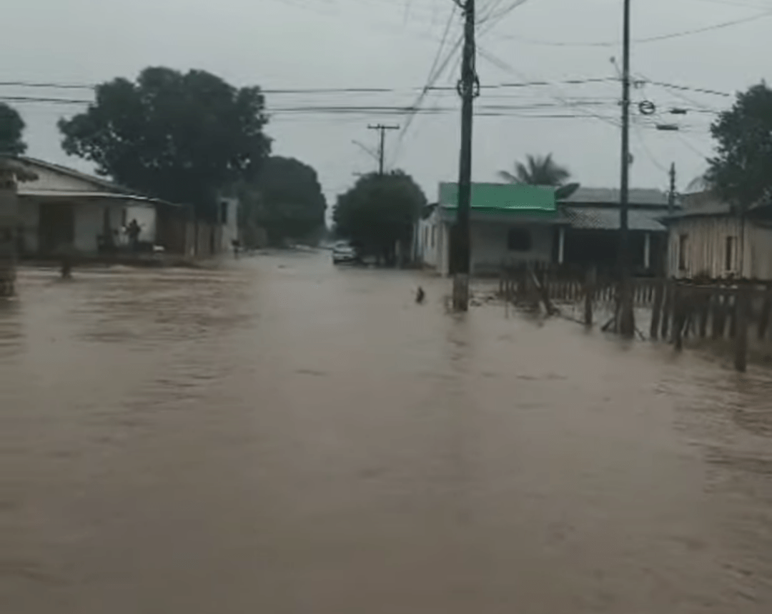 Devido às vazantes que não comportam ao grande volume de água, fica mais lento o escoamento da água , casas e ruas estão alagadas.