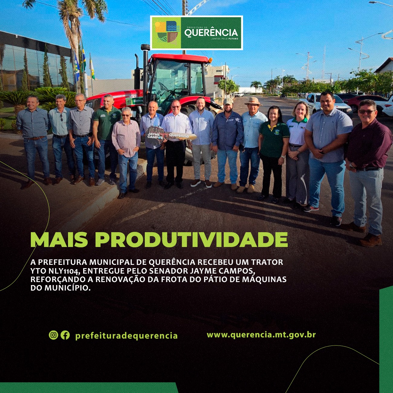 A manhã desta segunda-feira (10/11/25) foi marcada por mais um avanço para o município de Querência. A Prefeitura recebeu oficialmente um trator YTO NLY1104, fruto de uma parceria firmada com o senador Jayme Campos, que tem contribuído com investimentos voltados ao fortalecimento da infraestrutura e da agricultura local.