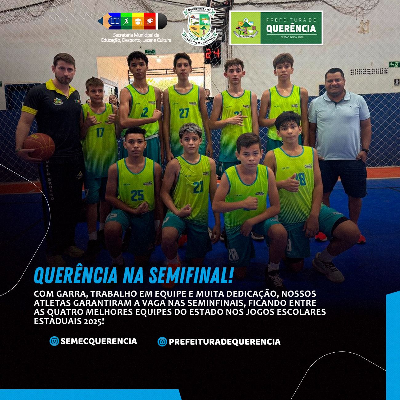A equipe de Basquete Masculino B está escrevendo um novo capítulo de orgulho e superação no esporte escolar de Querência. Com uma campanha marcada por garra, união e excelência técnica, os jovens atletas garantiram vaga nas semifinais dos Jogos Escolares Estaduais 2025, posicionando-se entre as quatro melhores equipes do estado.