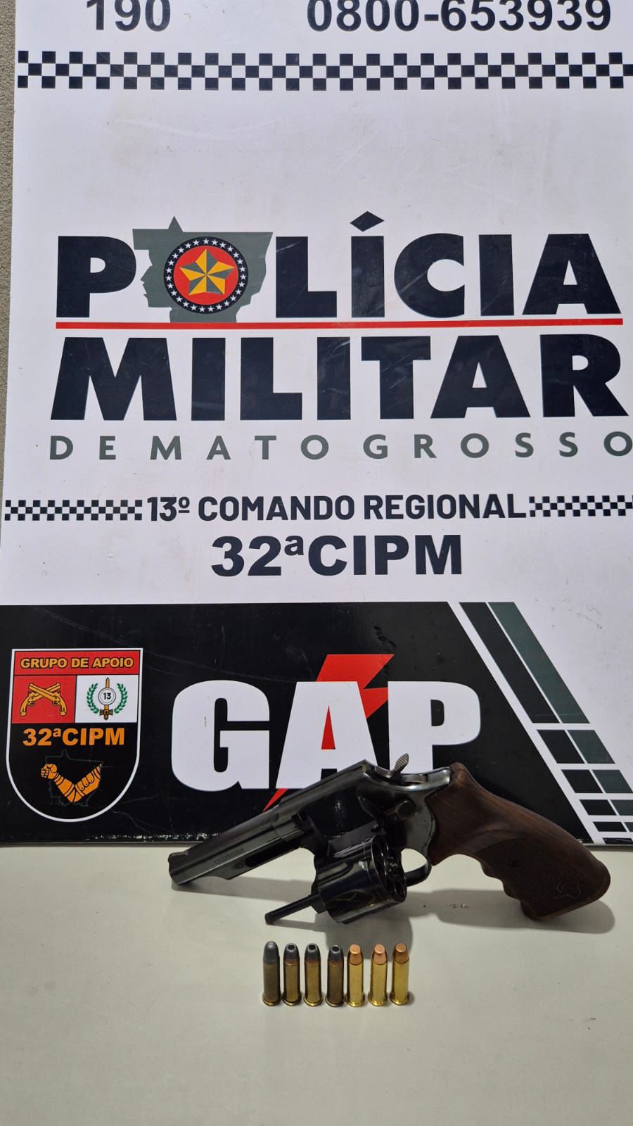 A Polícia Militar prendeu um homem por porte ilegal de arma de fogo nesta segunda-feira (26/01/26),durante uma ação do Grupo de Apoio de Nova Xavantina (GAP), no município de Nova Xavantina (MT).