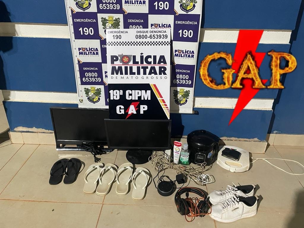 Diante das informações, o GAP deslocou até residência do suspeito, e em conversa com a convivente do mesmo, esta relatou para a gupm que havia acabado de chegar em sua residência, que encontrou os objetos que não era de sua propriedade no interior de sua casa, ela então, autorizou os policiais o recolhimento dos objetos no interior do imóvel,