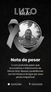 A família postou nas redes sociais o comunicado do falecimento de Gilmar Diniz.