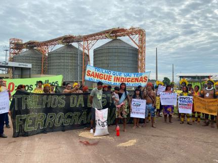 Indígenas de Mato Grosso protestam pelo fim das obras da Ferrogrão