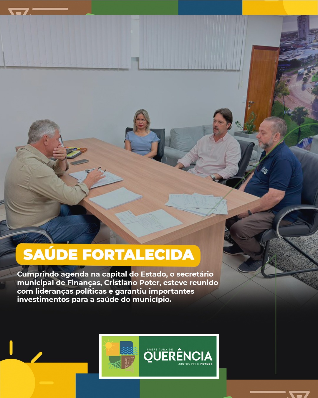 A área da saúde pública de Querência receberá novos investimentos destinados à melhoria da infraestrutura da Unidade Básica de Saúde do Setor E. O anúncio foi feito após agenda cumprida na capital do Estado pelo secretário municipal de Finanças, Cristiano Poter.