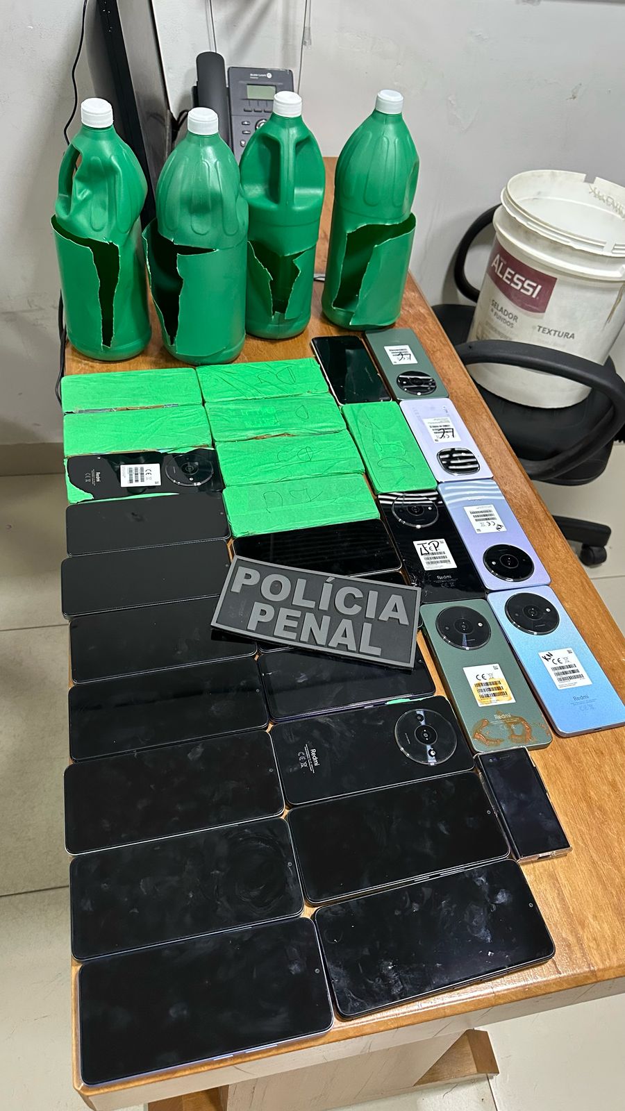 MT: Polícia Penal flagra presos tentando levar 29 celulares em frascos de água sanitária para dentro de carceragem