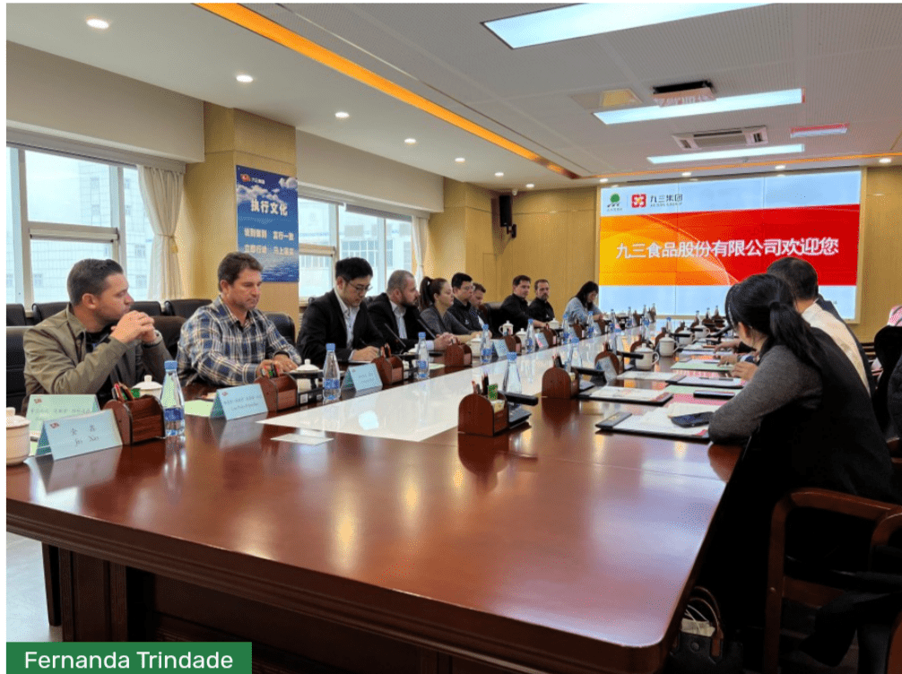 Em seguida, a comitiva teve a oportunidade de conhecer as instalações da Jiusan Group, uma das maiores empresas de processamento de soja da China. “O Brasil tem sido um grande fornecedor de soja, responsável por cerca de 70% da nossa soja importada, visto que eles estão aumentando a capacidade. Sem contar que o teor de proteína é mais elevado e isso é importante para o processamento e extração óleo”, disse Liu Yueshu.