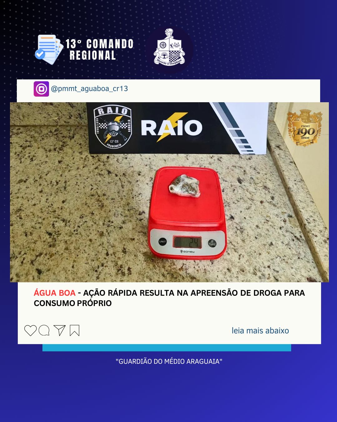Na noite de quarta-feira (23/10/25), por volta das 21h20, a equipe da Força Tática – RAIO, pertencente à 28ª Companhia Independente da Polícia Militar, realizou a apreensão de uma porção de droga durante patrulhamento no bairro Centro.