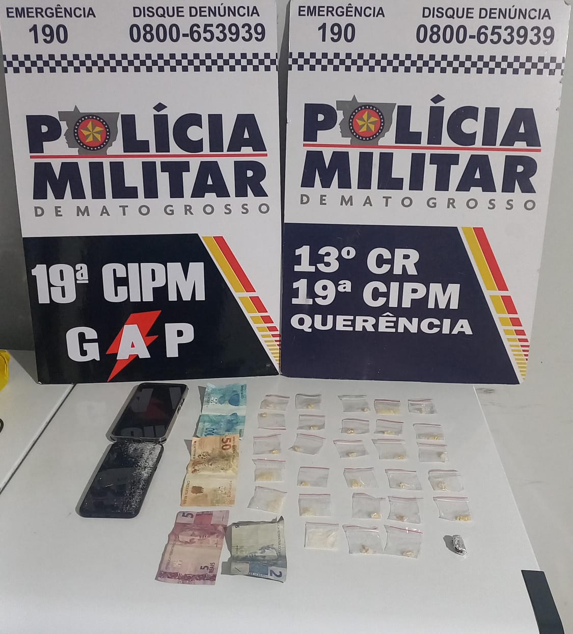 Na noite desta quarta-feira (19/03/25),uma guarnição da PM estava em rondas nas ruas do setor F, quando visualizaram dois suspeitos manuseando entorpecentes na área de uma kitnet.