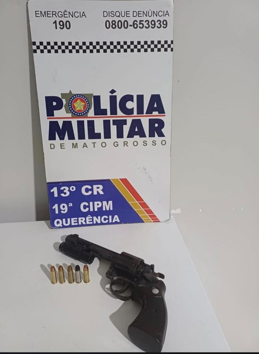 A guarnição deslocou-se imediatamente até o endereço informado e, ao realizar a abordagem, constatou a veracidade da denúncia. No interior do veículo foi localizado um revólver calibre .38, além de cinco munições.