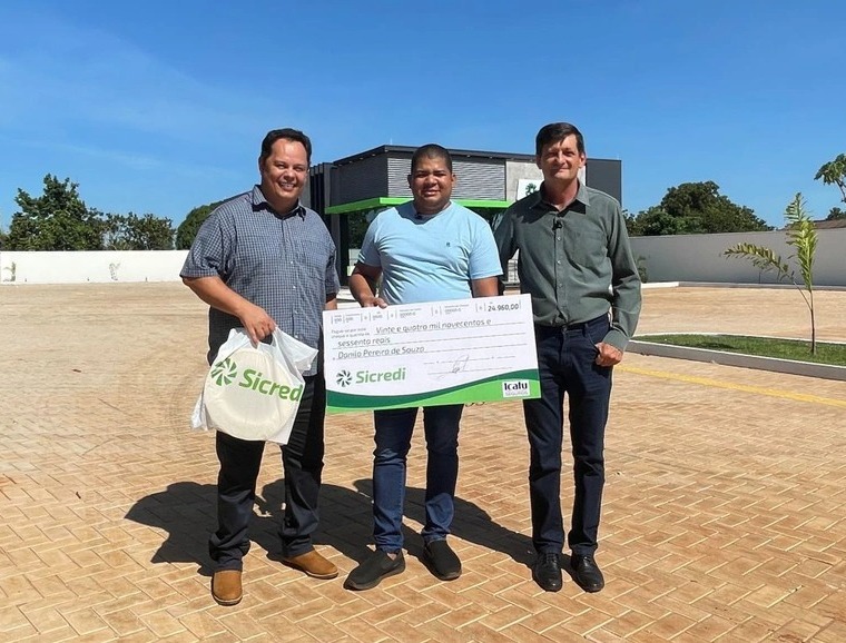 O presidente da Sicredi Araxingu, Martim Stefenon, entregou na manhã desta segunda-feira, dia 11, em Alto Boa Vista/MT, um cheque avaliado em R$ 24.960,00, ao associado Danilo Pereira de Souza, que foi o vencedor do sorteio realizado pela Icatu Seguros.