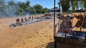 Logo após , foi servido um delicioso almoço com direito a churrasco de carneiro e costelão .