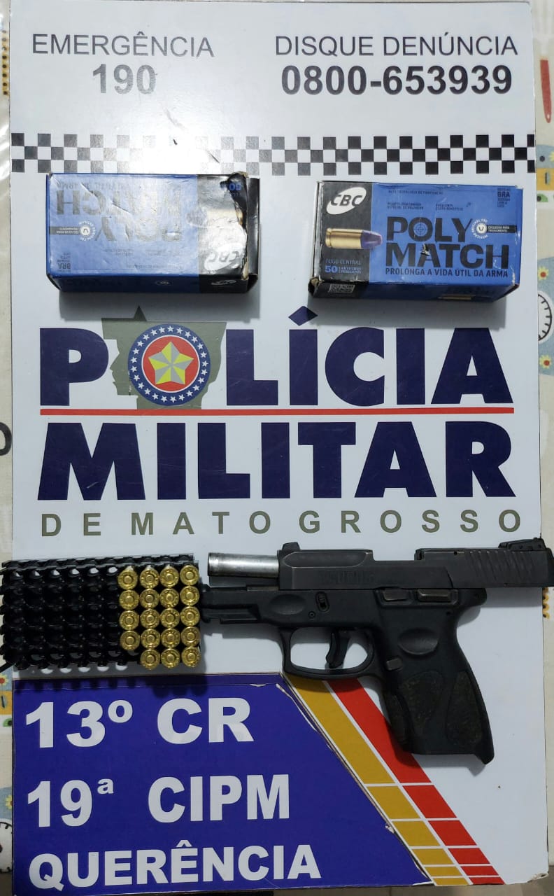 Ainda durante os procedimentos, os mesmos se mostraram hostis com as forças de segurança. Com eles foram apreendidos; um pistola Taurus 9mm e uma caixa com nove munições intactas.