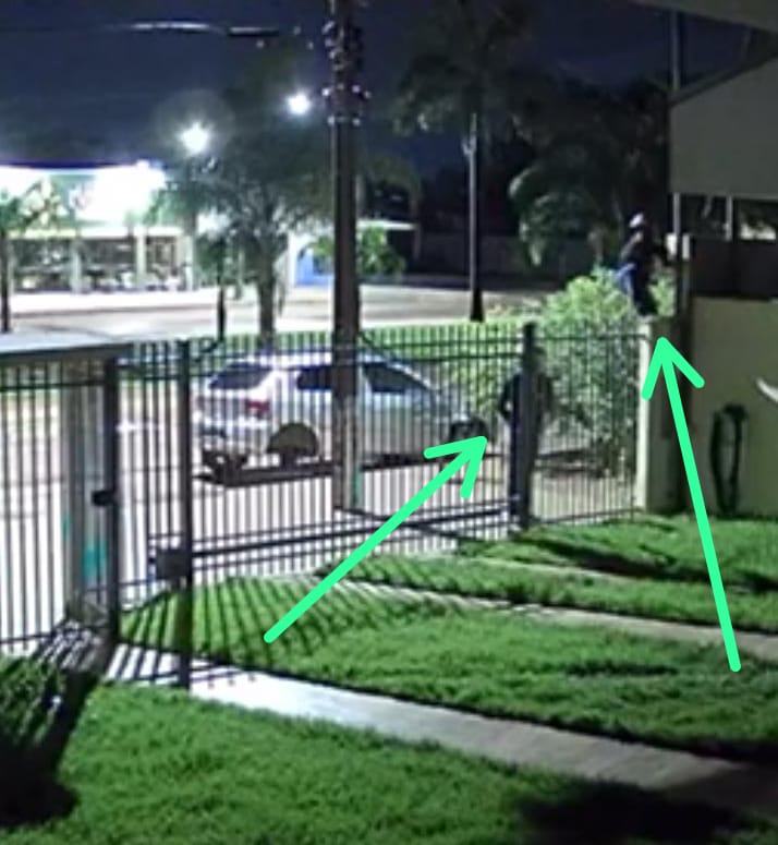 Como mostra nas imagens, os bandidos desligaram o padrão de energia, mas não imaginaram que a câmera de segurança continuava a funcionar, um deles ao tentar pular o portão e ao dar de cara com o cão de guarda, que logo começou a latir , se assustou. Os dois bandidos fugiram em seguida.