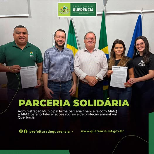 Na manhã deste último sábado (14/06/25), foi firmado um importante termo de colaboração entre a Administração Pública Municipal e duas instituições essenciais para a comunidade: a Associação Protetora dos Animais de Querência (APAQ) e a Associação de Pais e Amigos dos Excepcionais (APAE).