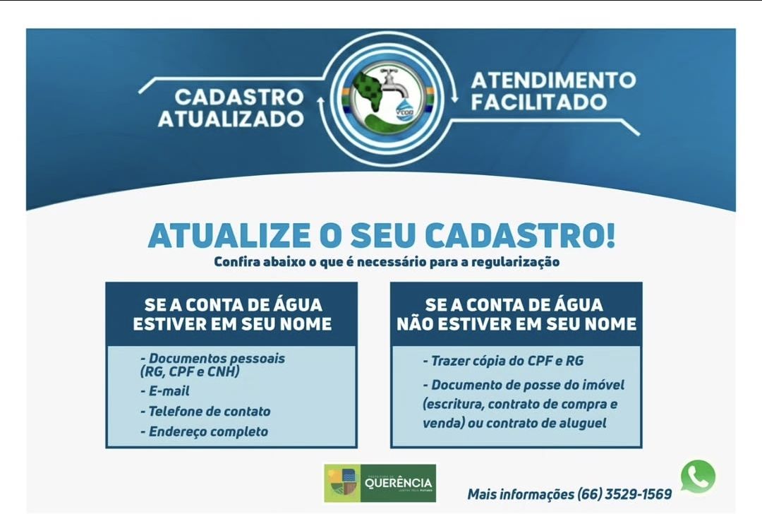 Manter os dados cadastrais em dia é fundamental para garantir um atendimento mais ágil e eficiente aos usuários do serviço de abastecimento de água. A atualização cadastral evita transtornos, facilita a comunicação e contribui para a melhoria dos serviços prestados.
