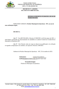 Gabinete do Prefeito Municipal de Querência – MT, 25 de outubro de 2021.