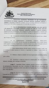 Artigo 2º – O fechamento de todos os estabelecimentos comerciais como: bares,casas de shows,boates,ginásios,salão de beleza e estética,cabeleireiro,manicure e pedicure,missas,cultos e outros estabelecimentos que realizam eventos ou aglomerações de pessoas.