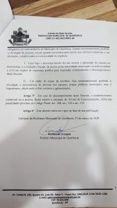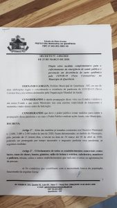 Fernando Gorgen, Prefeito Municipal de Querência MT,no uso de suas contribuições legais e considerando a existência de pandemia do Covid-19(Novo Coronavírus), nos termos declarados pela Organização Municipal da Saúde.