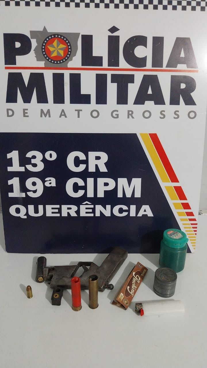 Após varredura na residência, a PM localizou a arma de fogo em cima da geladeira.