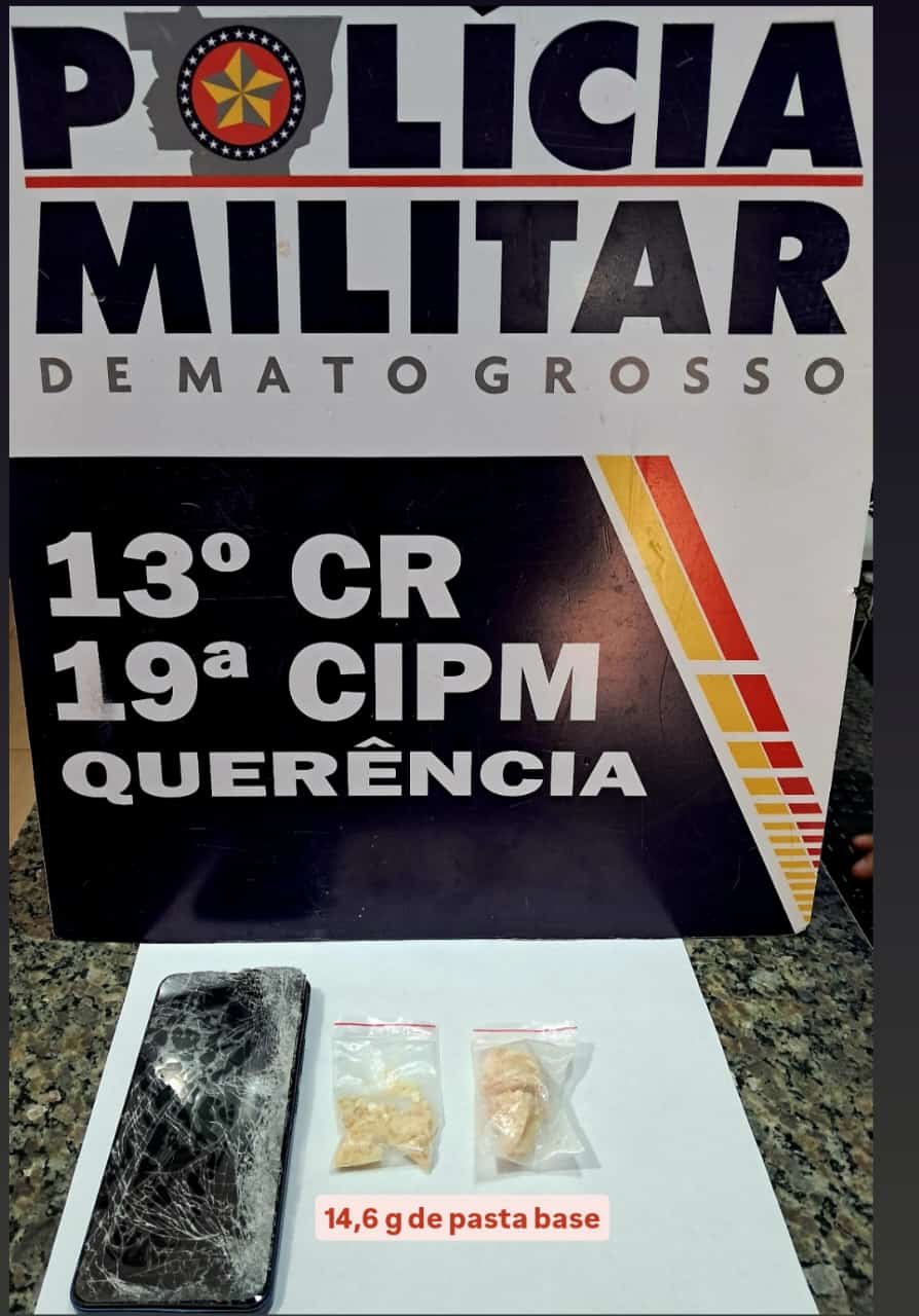 No bolso do suspeito foi encontrado dois pacotes de substância semelhante à pasta base de cocaína de aproximadamente 14,6 gramas.