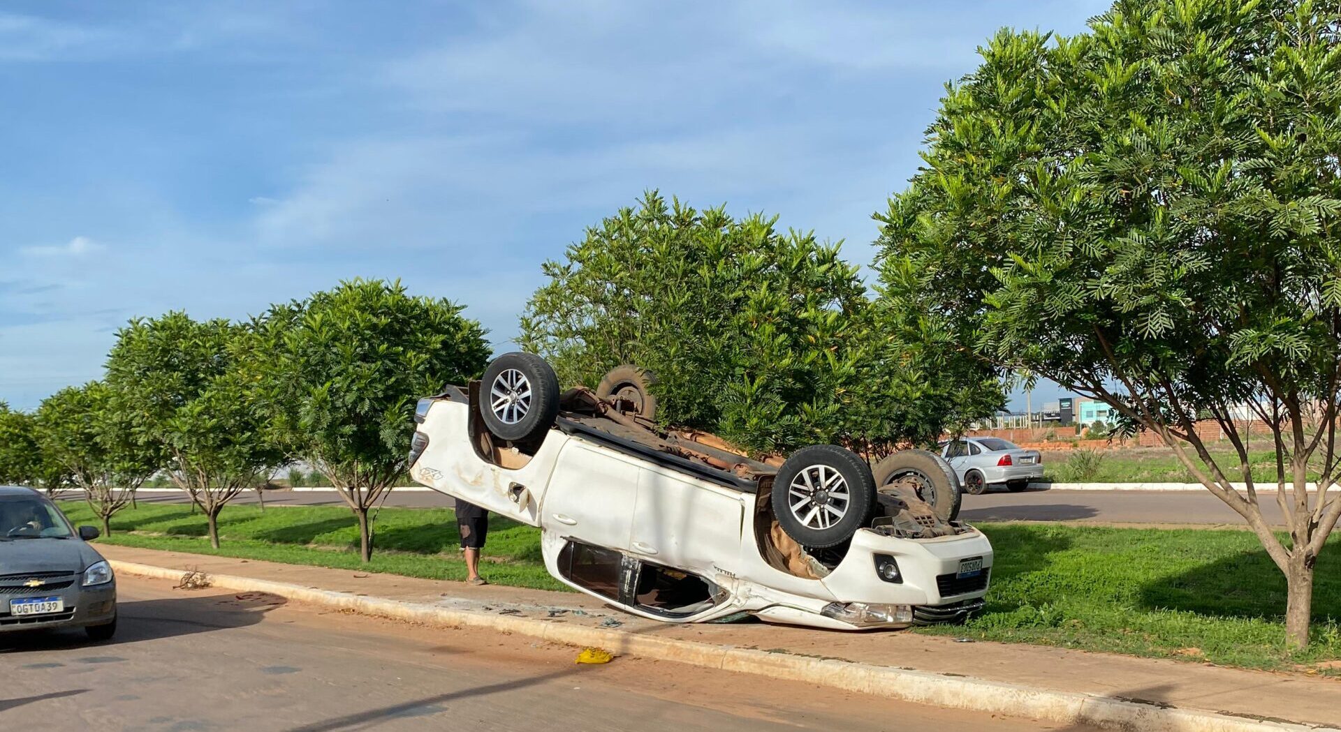 No vídeo um homem que registrou as imagens, fala que; “Tombou sozinho, acabou o freio na curva! Que B.O, carro de cliente ainda”!