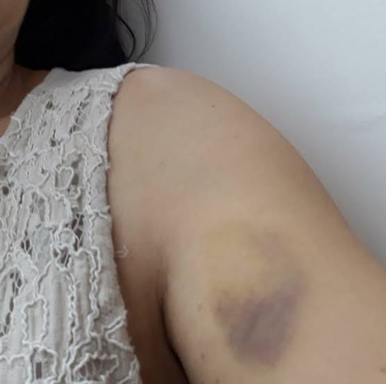 No hospital, a vítima, relatou que estava em confraternização familiar, e em certo momento seu esposo alterado veio em sua direção e a empurrou, consequentemente, a mulher caiu no chão sobre o braço esquerdo, logo em seguida, mesmo com os braços doloridos, principalmente o esquerdo, ela conseguiu se defender.
