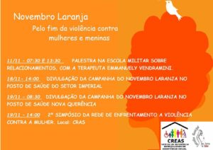 19/11 – 08:30 DIVULGAÇÃO DA CAMPANHA DO NOVEMBRO LARANJA NO