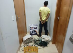 Os militares ao chegarem no referido local, o mesmo já havia evadido. Contudo, saíram em rondas nas imediações no intuito de localizar o suspeito, com as características e imagens, depararam-se com o suspeito de 24 anos, saindo de um bar no Setor F, ao ser abordado e perguntado pelo material furtado ele os informou que havia vendido ao receptador de 68 anos. Já, o receptador informou que havia acabado de comprar  do suspeito.