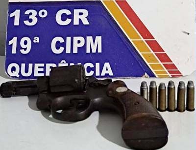 A equipe da PM entrou na residência e deteve o suspeito. Em buscas pela casa, os policiais encontraram o revólver em cima da cama do casal. A arma estava municiada e carregada com seis munições.