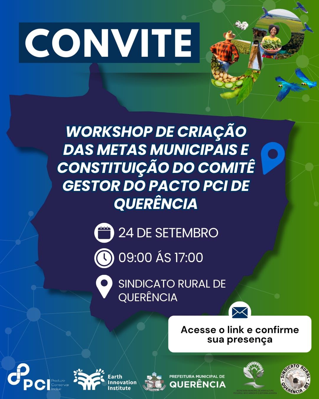 Na próxima quarta-feira, 24 de setembro, às 8h da manhã, o Sindicato Rural de Querência será palco de um evento de grande importância para o futuro do município: o Workshop de Criação das Metas do Pacto PCI (Produzir, Conservar e Incluir) e a formação do Comitê Gestor Municipal.