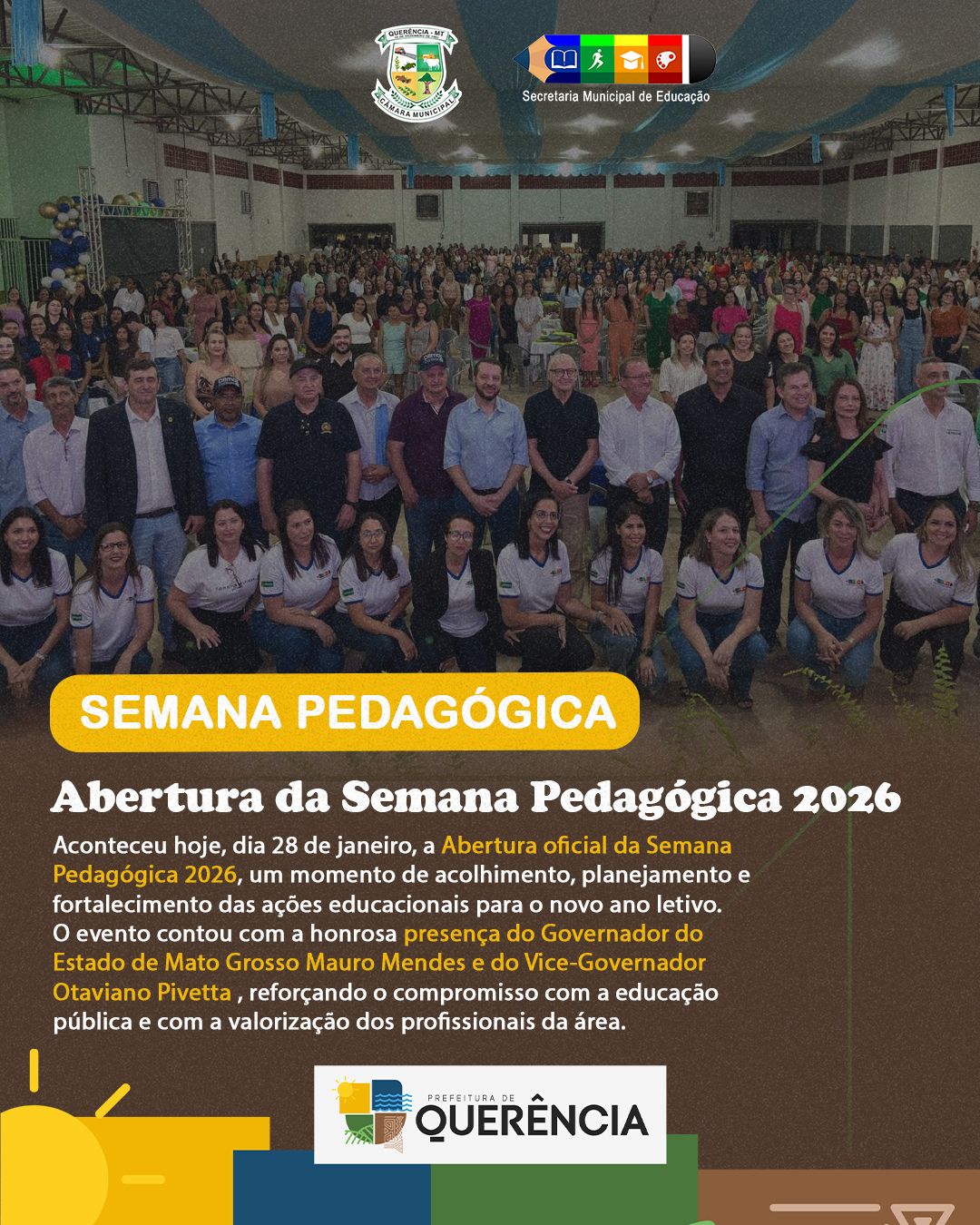 A abertura oficial da Semana Pedagógica 2026 foi realizada nesta quarta-feira (28/01/26), em Querência, marcando o início das atividades de planejamento e formação dos profissionais da educação para o novo ano letivo.