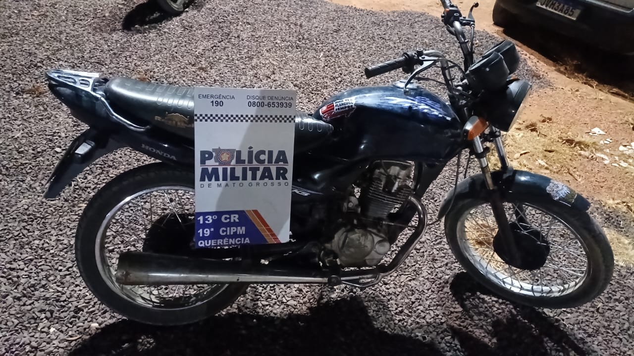 A Polícia Militar nesta última quinta-feira, 03/10/2024, por volta das 21h36min, em patrulhamento ostensivo na Rua maranhão com Rua Goiás, no Setor F, visualizou um indivíduo saindo numa motocicleta Honda/CG 125 Titan, de cor azul, de um ponto dado como: comércio de drogas.
