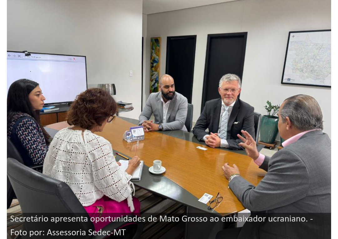 A Secretaria de Estado de Desenvolvimento Econômico (Sedec) recebeu o embaixador da Ucrânia no Brasil, Andrii Melnyk, nesta quinta-feira (23/01/25), para apresentar as potências econômicas de Mato Grosso.
