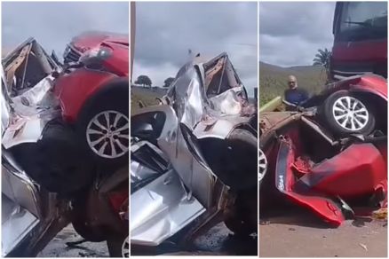 Conforme informações, um Volkswagen Gol e um Fiat Palio foram prensados entre duas carretas na rodovia. Três ocupantes do Palio morreram e outras duas pessoas foram encaminhadas para atendimento médico.