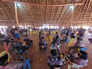Em seguida os parlamentares foram convidados a seguir para o centro da Aldeia, a onde houve algumas apresentações e danças tradicionais, em seguida, uma mesa com autoridades e liderança foi composta, a onde foram apresentados alguns caciques das aldeias que pertencem ao Parque Nacional do Xingu.