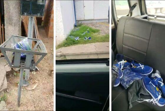 Nas imagens, um homem que não se identifica chega a recolher um dos kits de dentro de uma lixeira. Em determinado momento, ele mostra o fundo do carro com vários desses kits que, segundo ele, foram recolhidos nas vias do bairro.